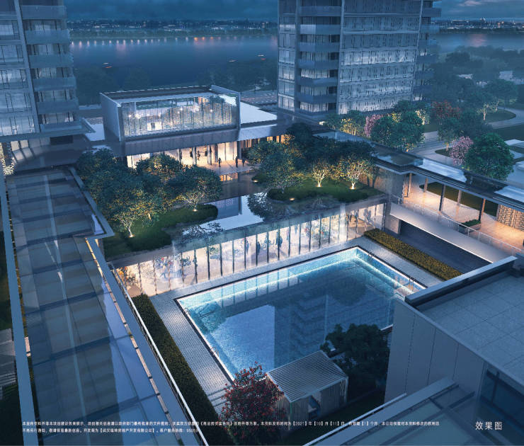 在繁华城市中营造“都市微度假”生活湛蓝的露天泳池,下沉式的空间设计享受“水世界”,同时拥享私密感为业主家人带来自在、放松的美好体验