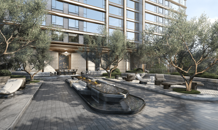 搭配超级底盘、公园入口、下沉庭院规划,构建“建筑嵌入自然,空间层层递进”的立体格局