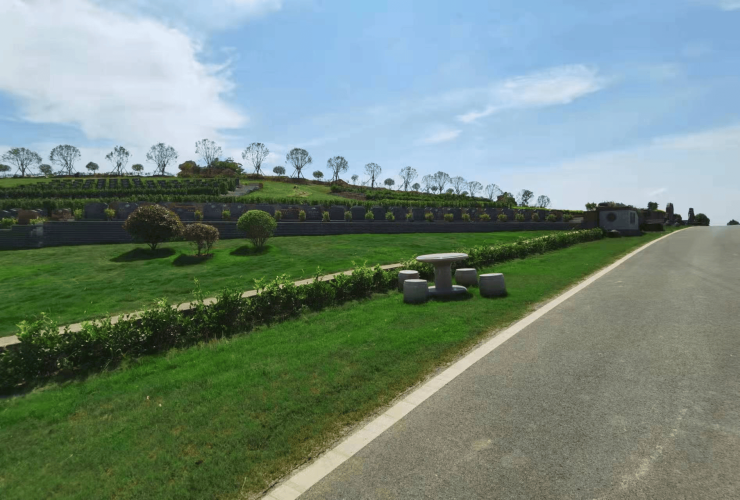 云井山公墓总占地面积达480余亩,绿化覆盖面积超过300亩,以生态园林式设计为核心,打造了“山水为景、文化为魂”的生命纪念地。园区依山而建,保留了原始山体风貌,绿化覆盖率超60%,种植了松柏、银杏等植被,形成了天然氧吧。此外,云井山公墓还以“仁、义、礼、智、信”五大文化主题命名园区,融合了传统民俗与现代艺术设计,设有文化墙、纪念广场等文化景观。