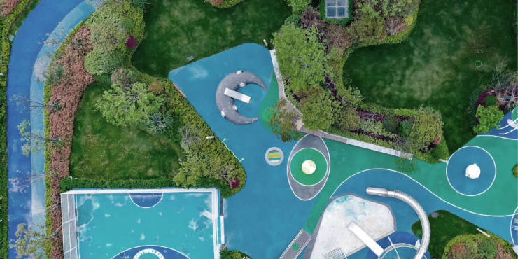 约650 ㎡超大活动区满足不同年龄段需求,儿童活动场可玩乐探索,篮球场、跑道满足青年有氧运动,休憩平台满足长者颐养需求