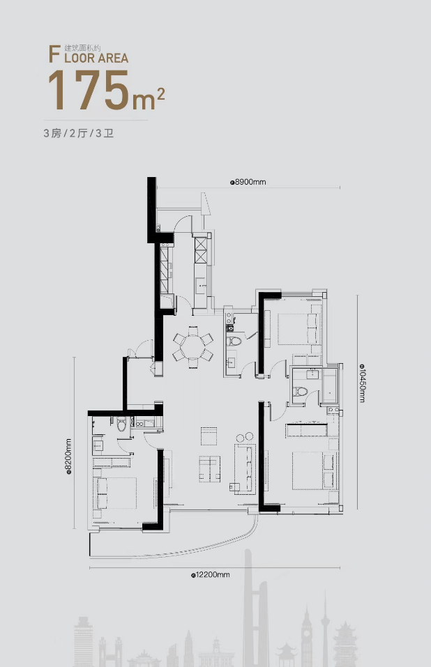 约175㎡三房三卫