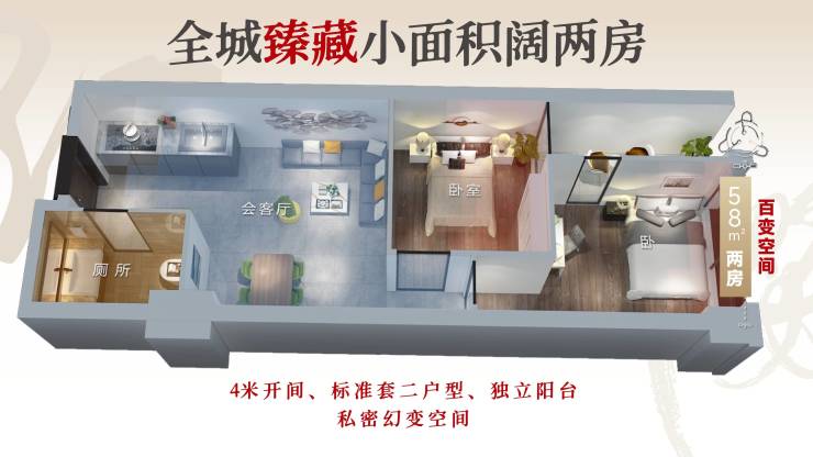 小户型(投资/单身):建面约45-57㎡