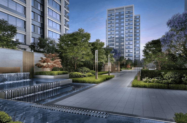 一轴三空间六景点,主题景观园林,世家门庭礼序。廊桥亭水,绿意植萃,归家动线之上,树影婆娑,舒展意趣