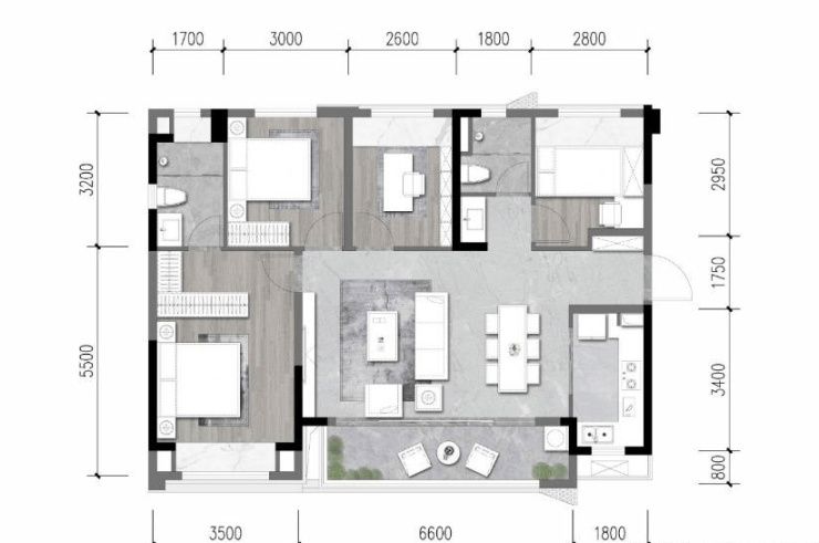 丨建面约118㎡ 极致功能四房丨?6.6米超宽横厅设计,空间利用率高?约36平米超宽式社交会客厅?大尺度飘窗设计,主卧套房设计?U型独立厨房生活主张
