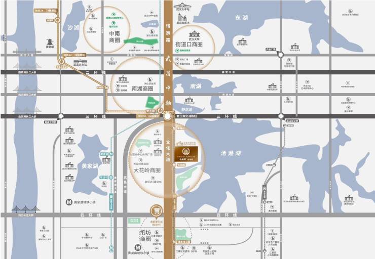 项目占位大武昌中轴南进封面,集萃武昌区域18大城市优质资源,构筑城芯半小时生活圈,近享城芯繁华