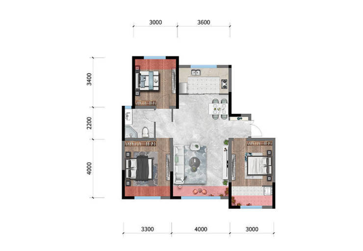 A户型:95㎡|三室两厅两卫