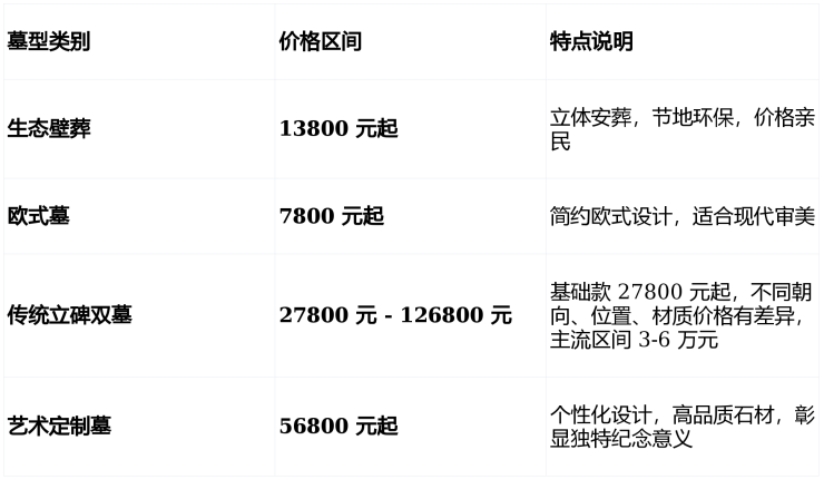 以下价格仅供参考,详情请拨打:028-64577857 咨询确认 在售墓型及报价;