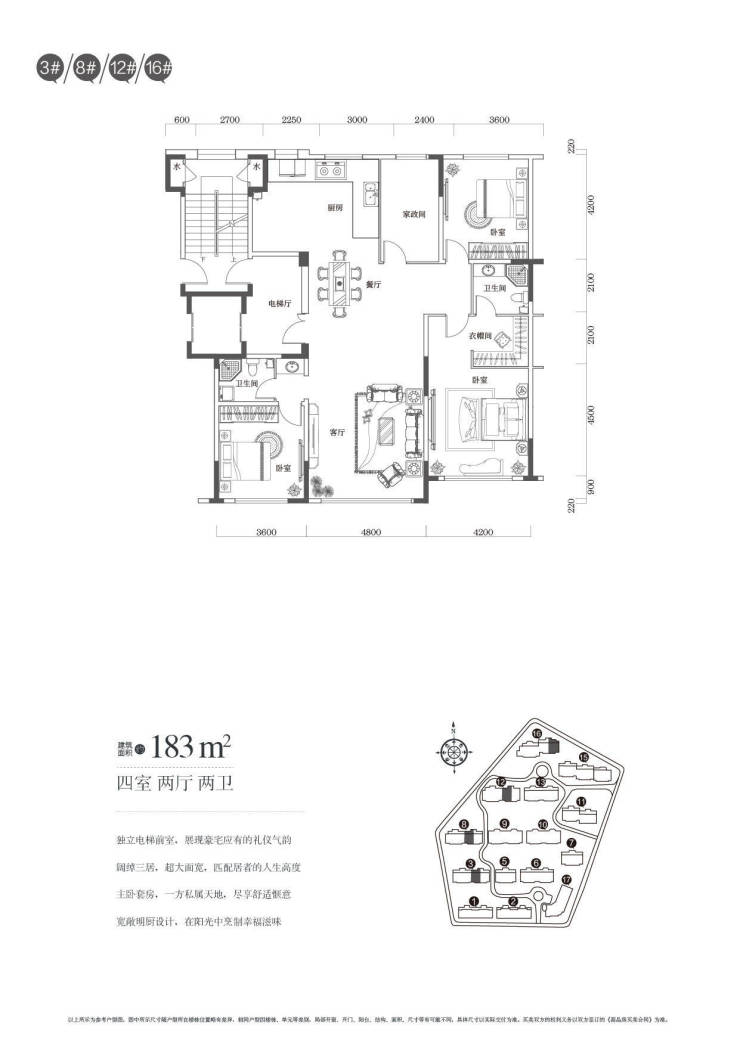 1、平层145-165-172-183-192-208㎡ 飞机户型 贯通梯 均价11000元/㎡