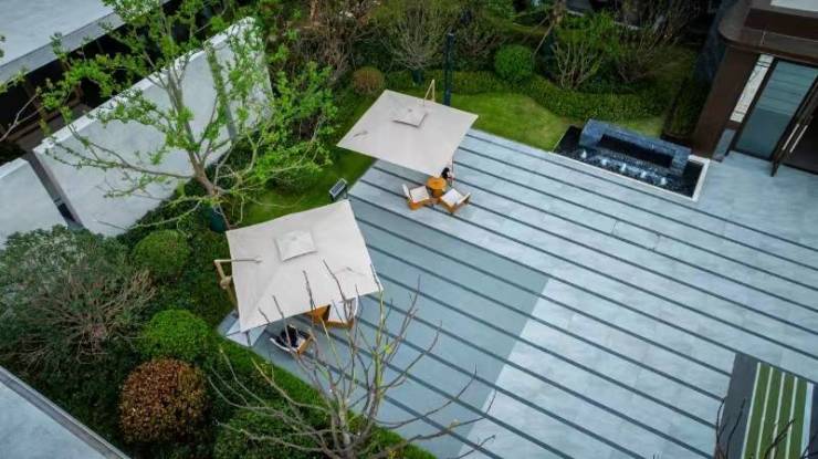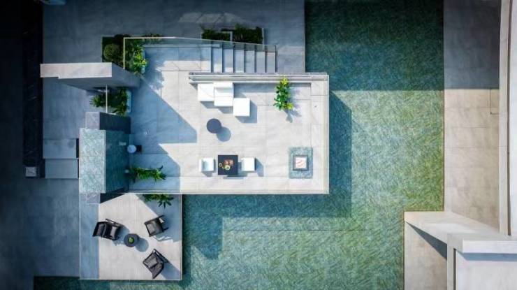 松弛感:中心“水瀑光院”水波荡漾,心绪自轻松