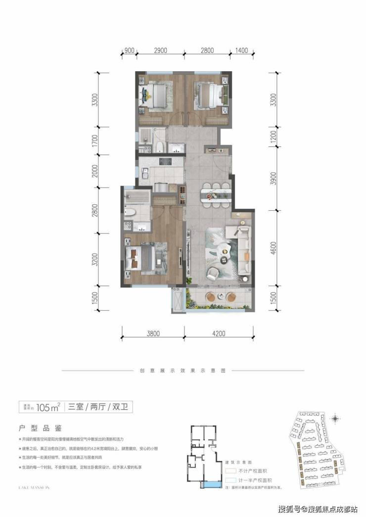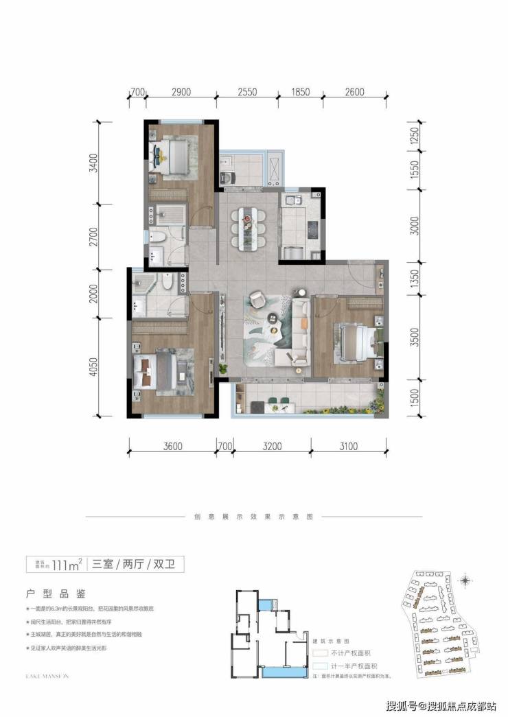 小区规划:项目占地约136亩,容积率1.52,绿地率31.5%,有1449个停车位,规划了一条长约300米的景观主轴,打造了 “一轴一带三庭十园” 的洄游式无界园林,有下沉水院、镜面水景等设计元素。