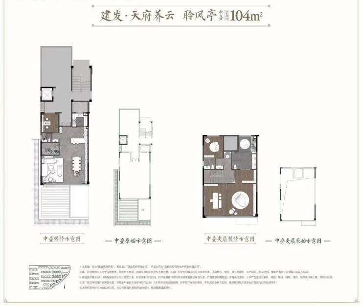 产品面积:上叠120㎡,中叠104㎡,下叠101㎡