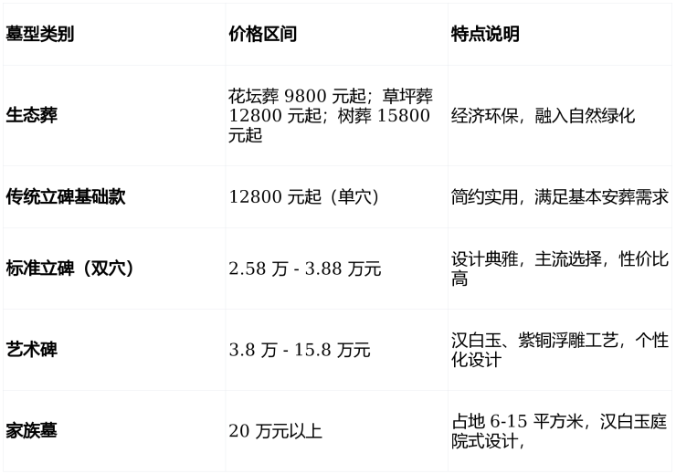 以上价格仅供参考,详情请拨打陵园电话:400-882-0905(24小时)咨询确认;