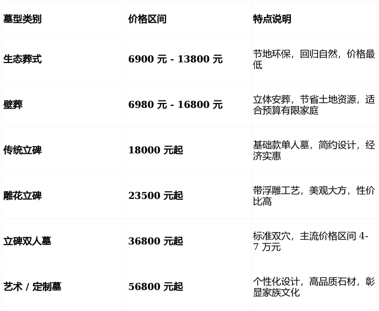 以下价格仅供参考,详情请拨打:028-64577857 咨询确认 在售墓型及报价;