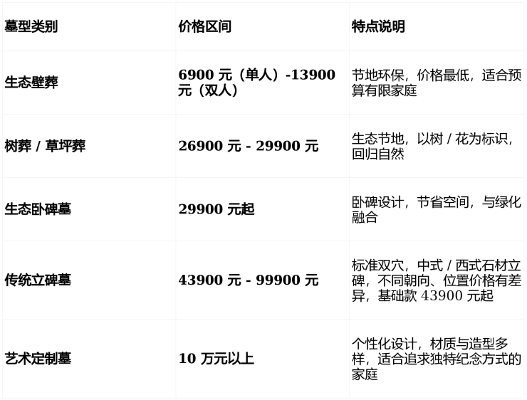 以下价格仅供参考,详情请拨打:028-64577857 咨询确认 在售墓型及报价;