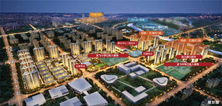 【绿都·东澜岸】二期总占地84亩,总建筑面积约26万㎡,由9栋高层和沿街商业组成,容积率3.491,绿地率39.79%,东临杨桥大道、西侧龙飞北街、北侧金秋路、南侧祥瑞路。