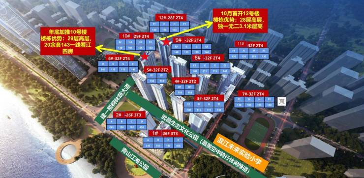 110万方武汉最美江滩+18公里世界级城市绿道前有被誉为“武汉最美江滩”的青山江滩,紧邻武九铁路遗址公园、市级园林科学公园。