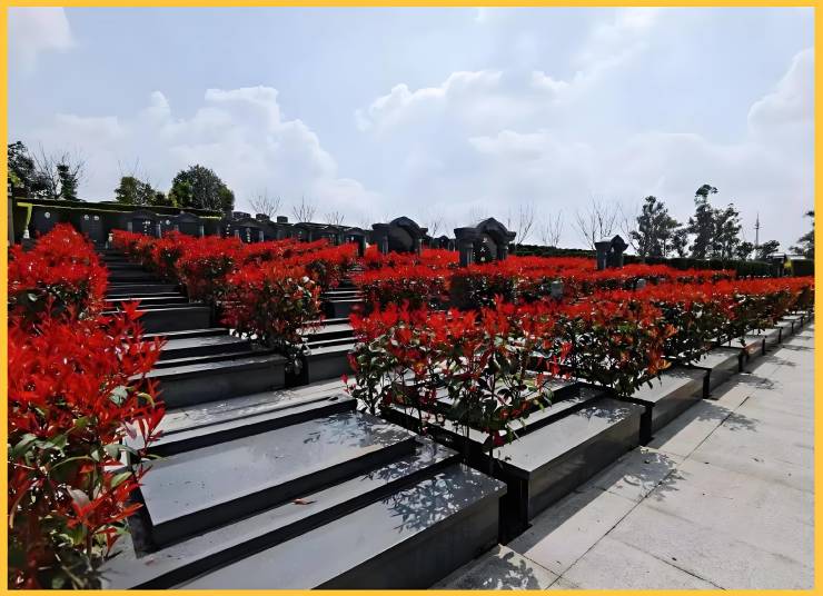 自然景观:植被覆盖率超70%,种植樱花、银杏等植物,四季景观各异,园内设人工湖、观景平台,适合祭扫后游览。