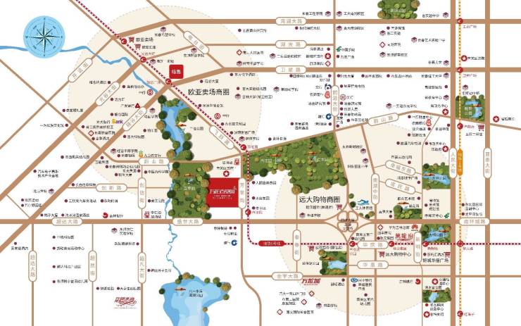 三公园环绕,一河相依
