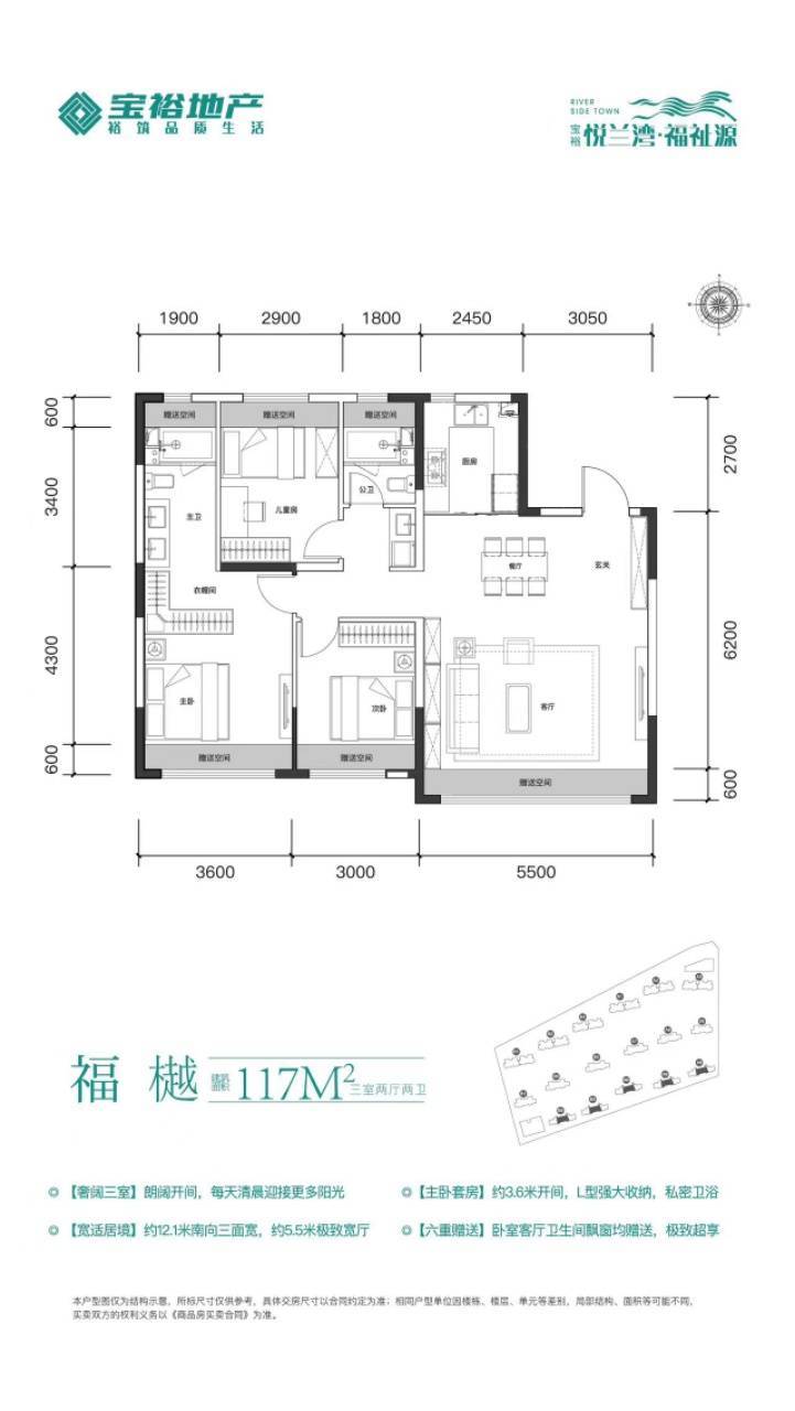配套:一街三大商(麦德龙、迪卡侬、中东港)一河三公园(伊通河,项目东侧景观示范区已投入使用,西侧宝裕假日公园已投入使用南侧伊通河公园)一街双轨交(轻轨4号线地铁6号线已正式通车)交汇换乘站“福祉大路站”距离项目约800米南关三实验已开学。