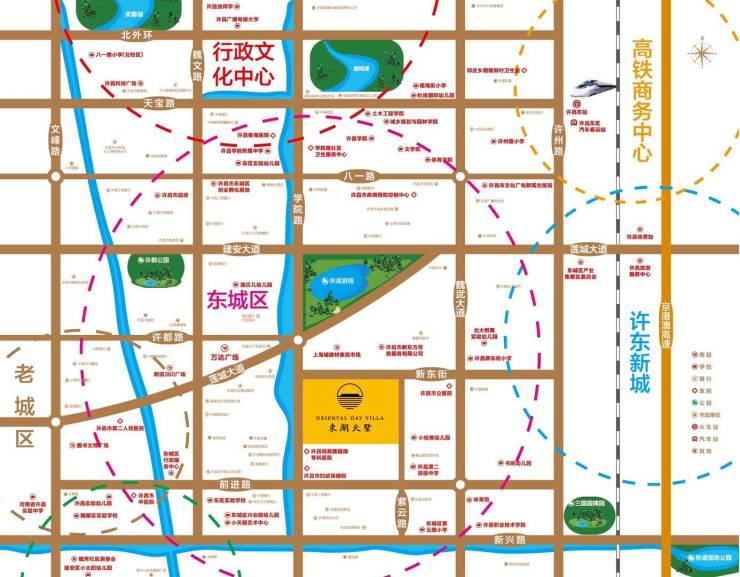 东湖天墅项目周边拥有“四纵四横”立体交通网,“四纵”——魏文路、学院路、魏武大路、许州路“四横”——建安大道、莲城大道、前进路、新兴路。天墅业主可通过“四纵四横”交通网,通达东西,贯通南北,快速到达许昌市内各个区域,畅享大许昌半小时生活圈。30分钟可达新郑国际机场,从高铁东站22分钟到达郑州、一个半小时到达武汉、3个半小时到达北京,立体交通网络畅联全国!