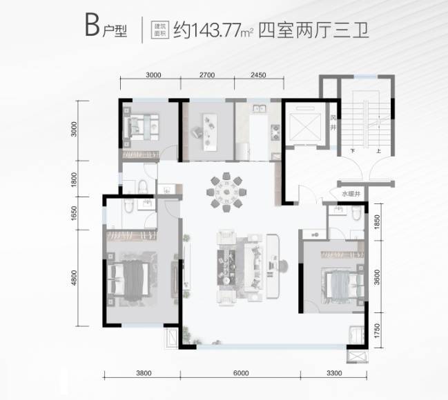 梯户比:一梯一户 \面积:143㎡\价格:8500-9000元/㎡