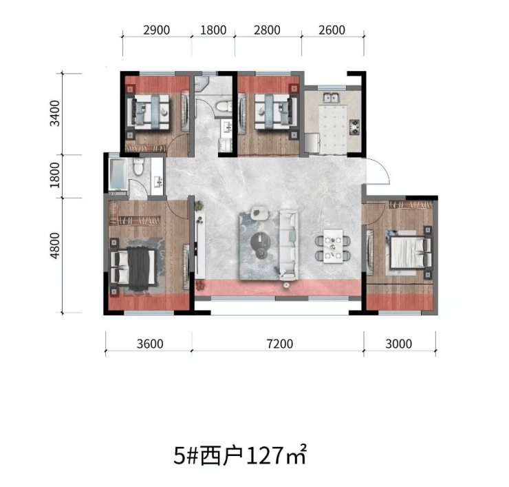 G户型:129㎡|四室两厅两卫