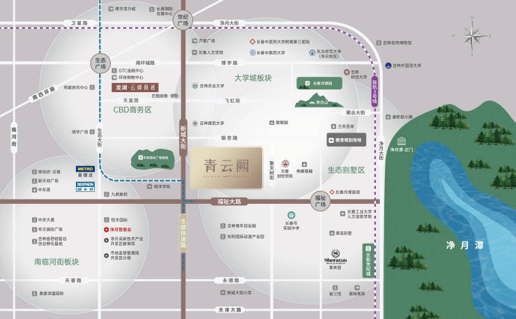 区位图:项目一横三纵交通网+多维立体交通配套通达全城,净月改善核心位置;