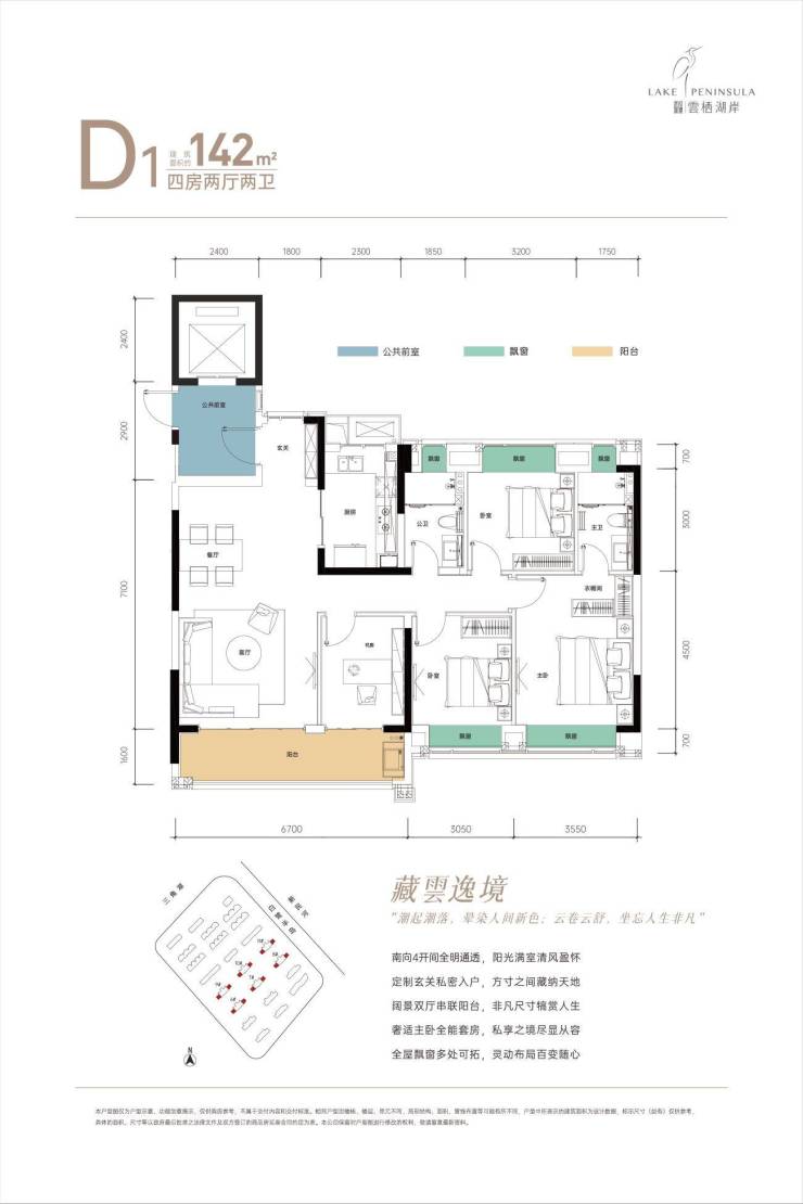 主力户型:建筑面积约109-143m²「云境」高层建筑面积约178-230m²「观雲」大平层建筑面积约181-227m²「雲墅」一线湖岸藏品