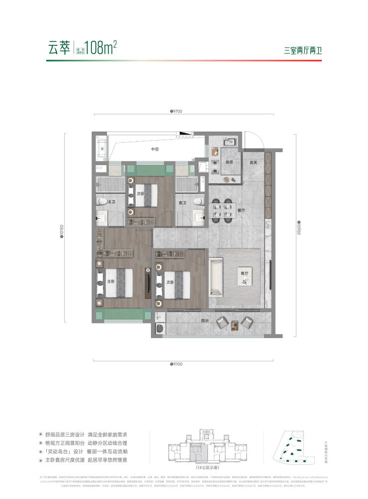 空间改善:建面约108-175㎡满足全家庭需求的生命周期空间