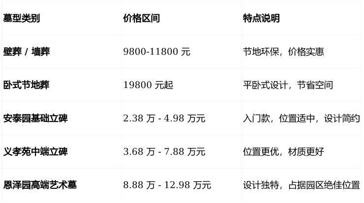 以上价格仅供参考,详情请拨打陵园电话:400-996-0853 (24小时)咨询确认;