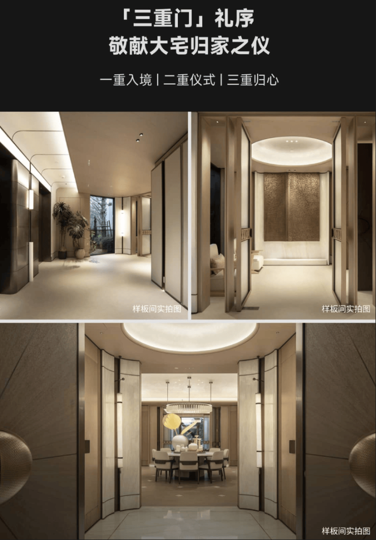 天琴澄音所有大平层与别墅均为精装交付,精装体系堪称行业最强。设计上采用“安缦”风格,以大面积木饰面、奢华石材,营造简洁丰蕴的隐奢美学,区别于传统豪宅的堆砌式奢华,更具居家度假感。