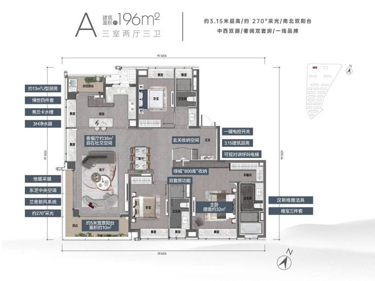 3号楼 面积170C 37层 2梯2户 公摊25.8%