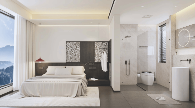 得益于原生溪谷地形,住假区可尽揽群峰俊秀,俯瞰版纳风光。同时与国际前沿设计事务所合作,找寻到民族文化与现代建筑的完美结合,流线型外立面、酒店化的建筑和空间设计,融合五星级的酒店服务,为高端改善客群缔造“空中美墅+温泉疗养+星级服务”的国际康养度假区。曼纳溪作为首开区,精研高端改善客户康旅需求,打造“上层旅居度假+底层温泉康养”相结合的创新型产品,充分利用首层空间,打造集温泉泡池、按摩理疗于一体的温泉SPA馆,从五星级酒店大堂到酒店式服务,每一处都彰显着业主的尊崇。