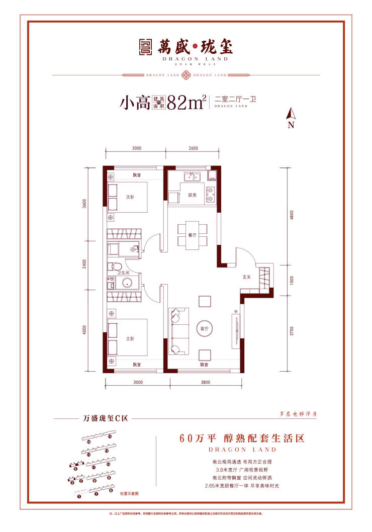 4、四米客厅开间,四米餐厅开间,四米厨房开间,LDK等宽设计,超大空间体验,四个飘窗赠送7.8平