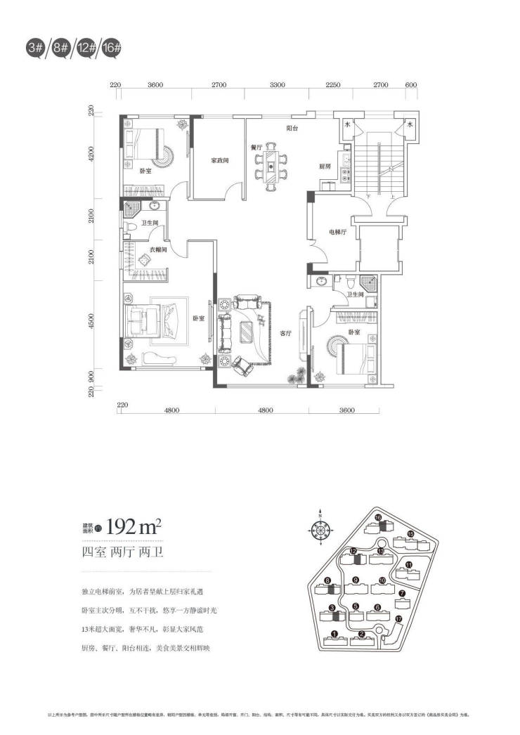 1、平层145-165-172-183-192-208㎡ 飞机户型 贯通梯 均价11000元/㎡