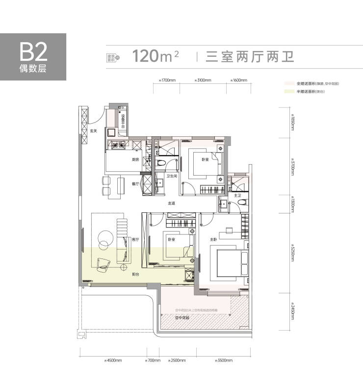 首开楼栋得房率高达127-132%约16-20㎡空中花园全赠送!