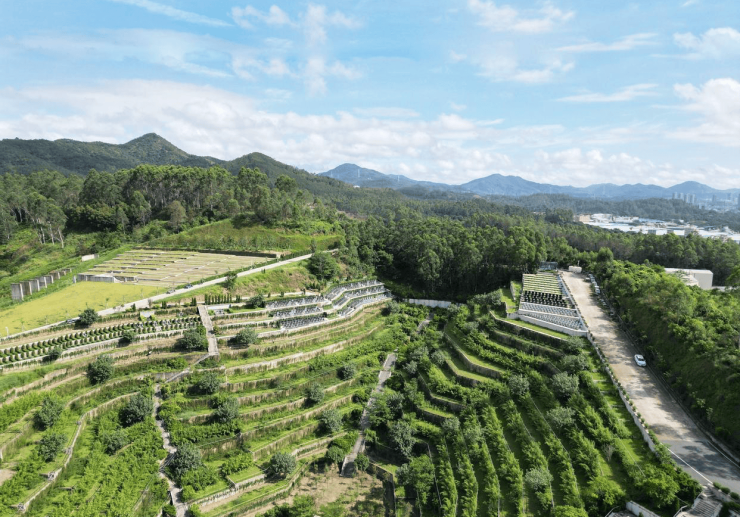永祥和纪念公园所在区域属于岭南莲花山脉,山势起伏绵延不绝,青山环抱、灵水缠绕、云遮雾障、仙云飞渡、草木葱郁、负阴抱阳,可谓山苞川拱、祥护灵祗,既得山水之境,又不失比邻城市之利,是大湾区藏风聚气的绝佳宝地。