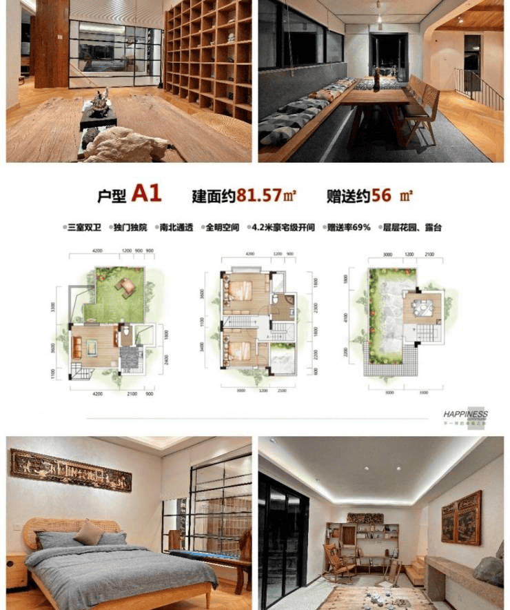 户型特点:主力户型为叠加别墅,多为“一院一户”,赠送私家菜地使用权,部分户型带露台。