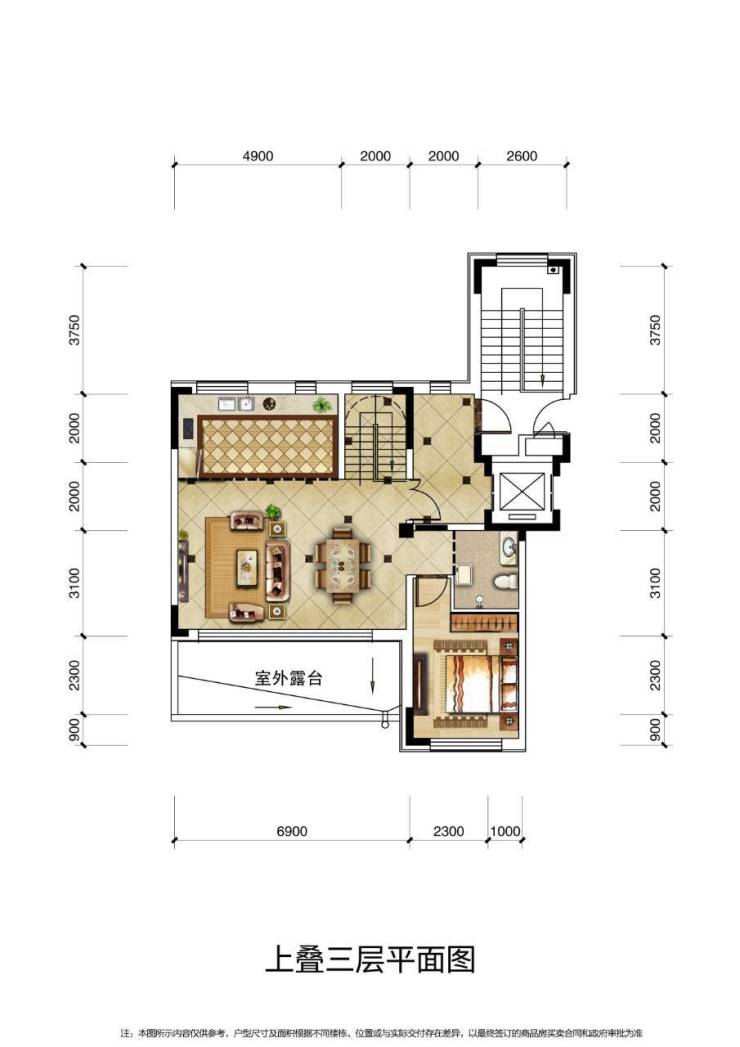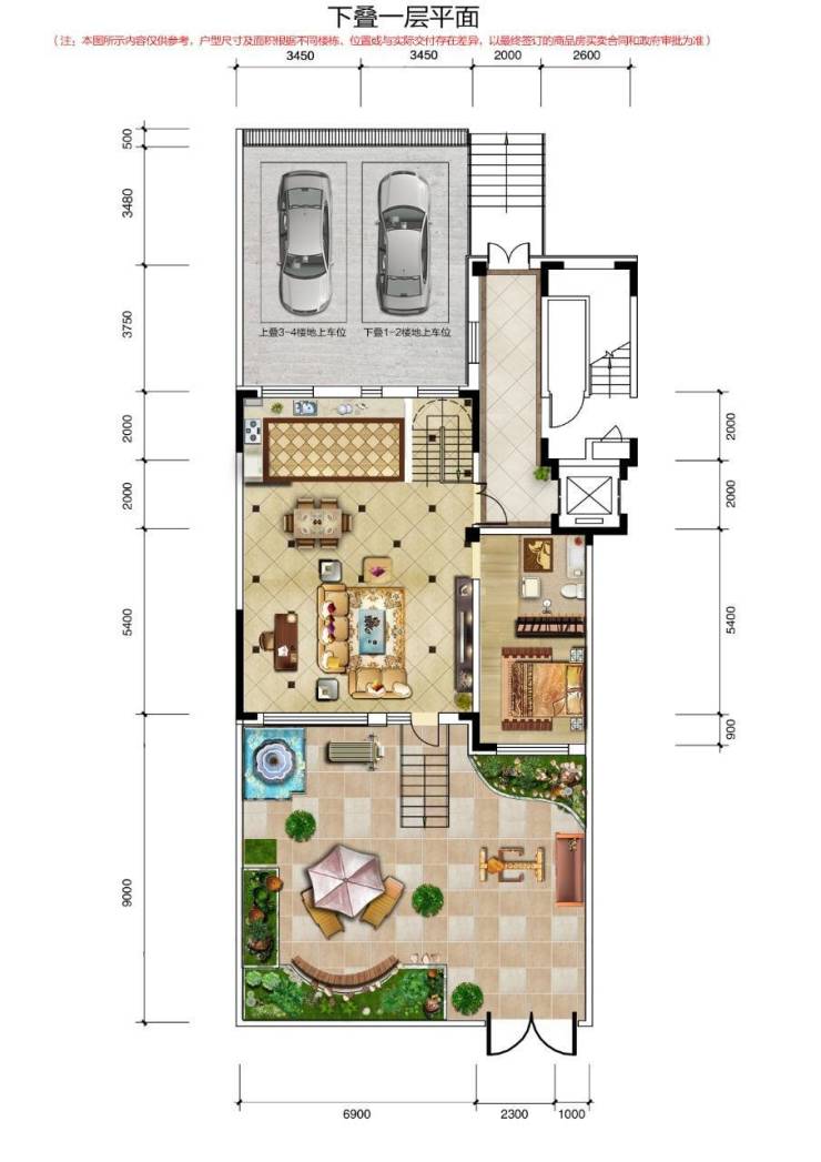 2.下叠赠送花园露台、车库、车位等超大面积,上叠赠送露台、车库、车位以及超多创意空间