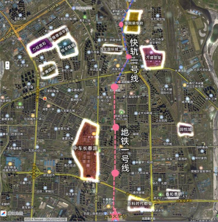 主轴之上 打通城市脉络中车·长春源邻近北人民大街、凯旋路等多条城市主干道,还将打通长新街、一匡街、长岭街道路实现二道、宽城、绿园的北城大贯通,提升出行的便利性。【项目区位】