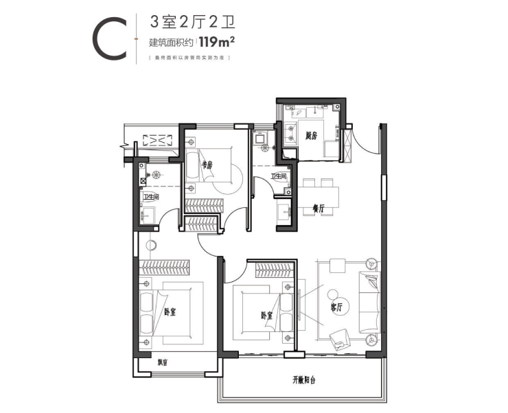 95/117/127㎡三房、142㎡四房,极致空间规划设计,舒适居住体验。