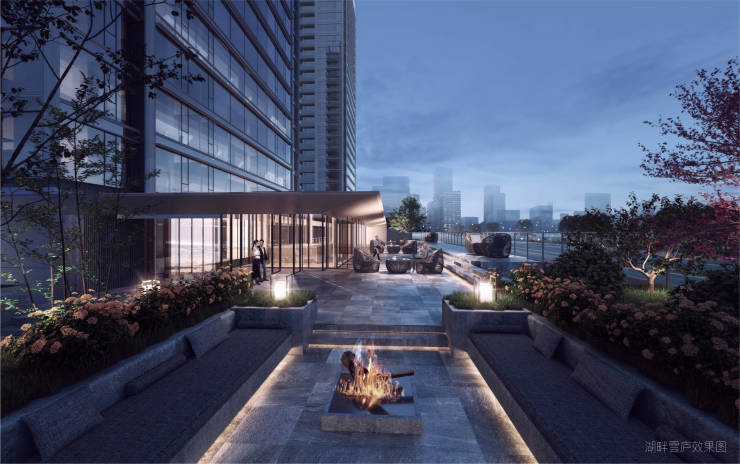 为了打造丰盛的社交空间社区通过抬高,形成约3-4米高的赏湖跃台;大平台之上,有绿植小岛、休闲观景座椅;在这里,既可以静赏城市风景,亦可以与家人、友朋、邻里对景相聚。