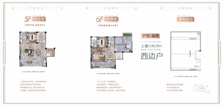 中叠:建面约147-156㎡,享纯露台拓展约24-33㎡,在传统复式楼设计的基础上把花园搬到了空中,