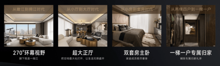 不负土地稀贵与滨江资源,建面约108-172㎡内环滨江品质华宅,一线瞰江,内揽云庄十景,外瞰江景风光。