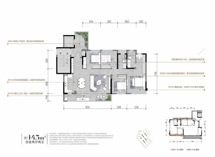 143平,2T2户 装修标准:3299元/平 预计单价:2.5万/平起 预计交房时间:2026年9月