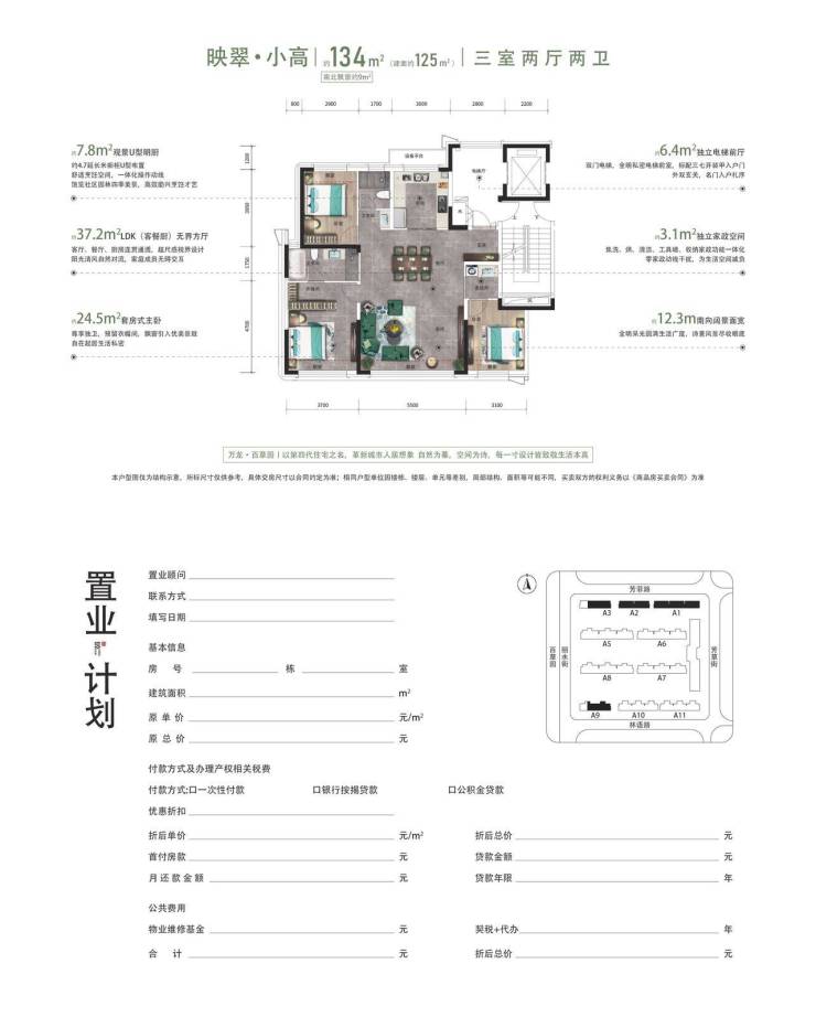 占地面积:地块4.5万㎡,建筑面积约6.8万㎡,容积率1.49,绿化率37%