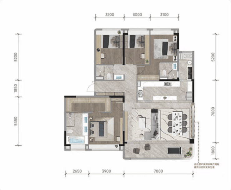 A户型|洋房|建面约176㎡| 四室两厅三卫