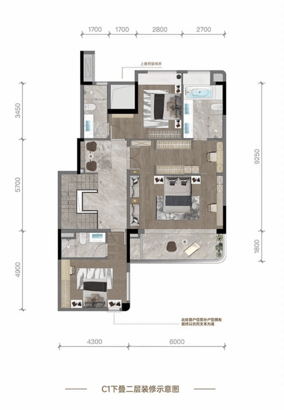 C1户型|叠拼|建面约238㎡| 四室两厅四卫