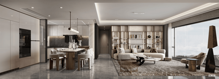 4、内外双玄关、新创独立储藏空间 、大方厅(超尺度客厅、景观厨房+岛台+餐厅+电器塔)