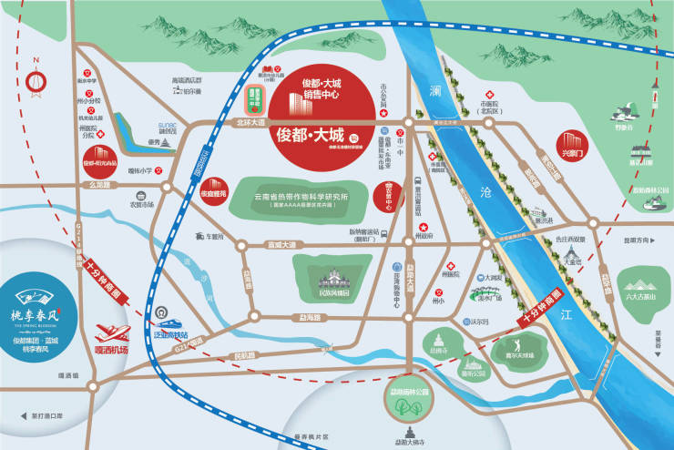 【交通畅达 】:坐拥北环大道接轨国际昆曼高速大通道等多条城市次主干道,八钟直达泛亚高铁站、西双版纳国际机场。